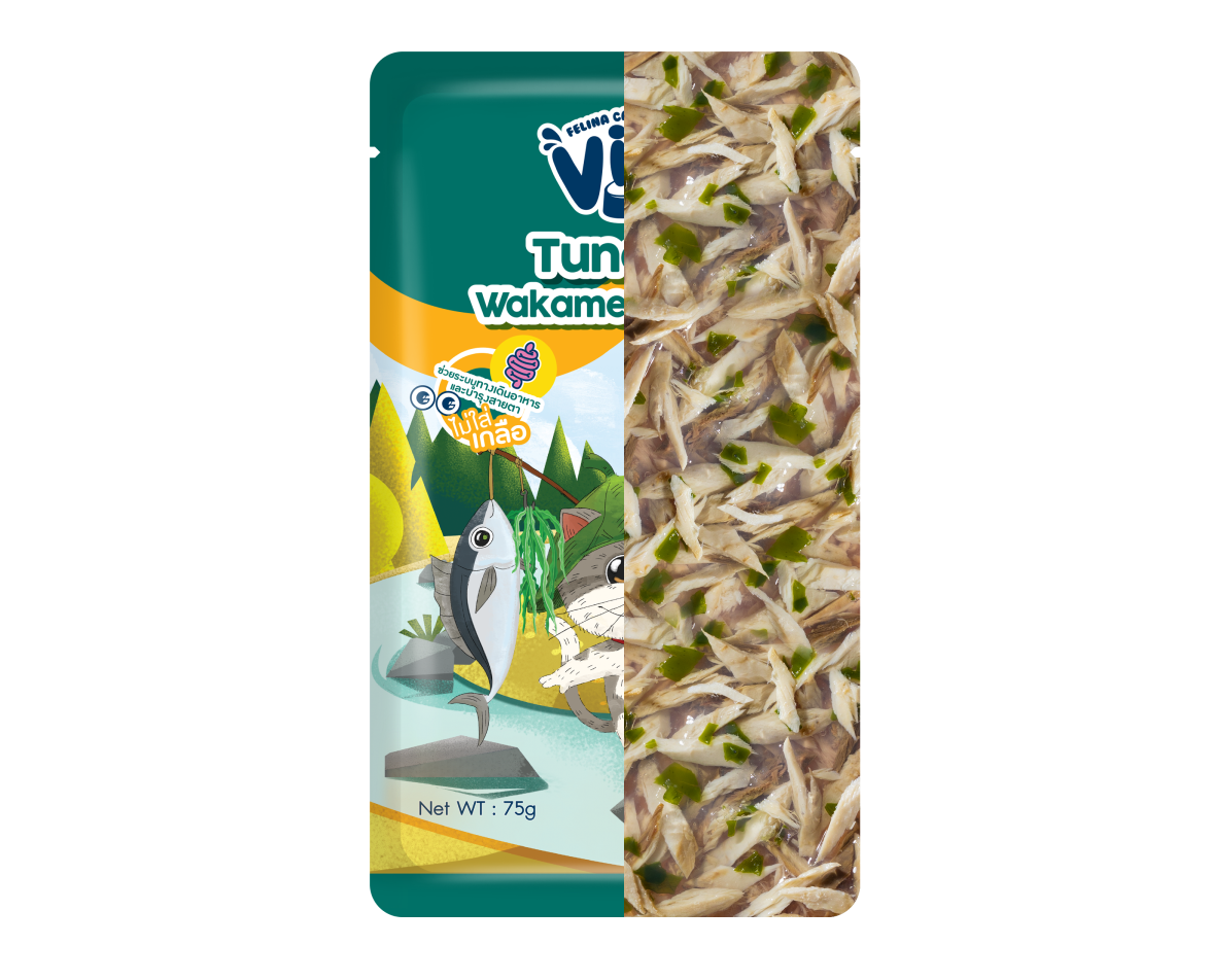 ครบรสสัมผัสจากทะเล ด้วยปลาทูน่ารสชาติเข้มข้นผสมผสานกับสาหร่ายวากาเมะนุ่ม ๆ รวมอยู่ในรูปแบบเจลลี่เนื้อเนียนนุ่ม อิ่มอร่อยได้แม้ไม่มีการผสมเกลือและสารกันเสีย เสริมด้วย วิตามินอี โอลิโกฟรุกโตส และทอรีน ช่วยให้การทำงานของร่างกายแข็งแรง