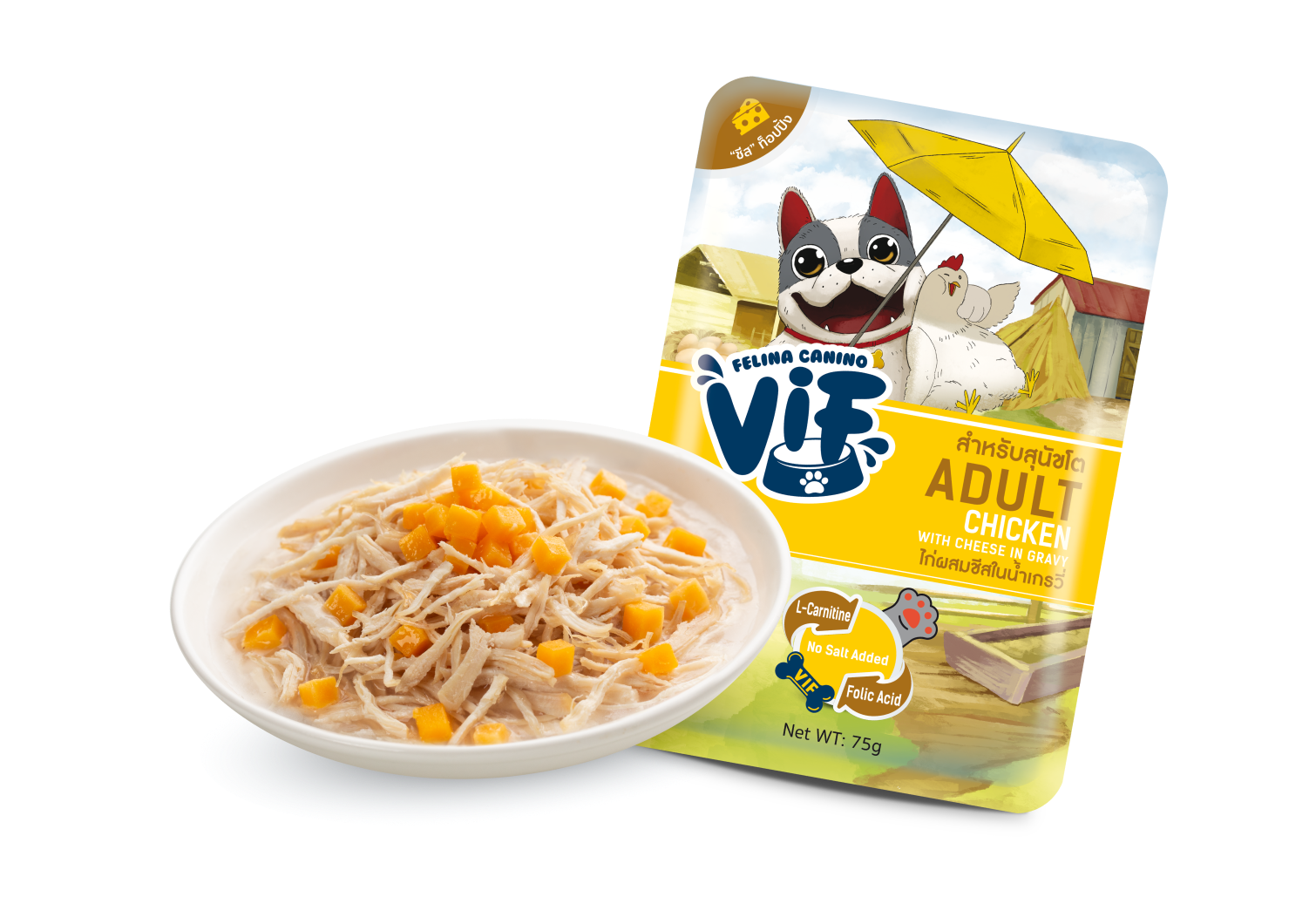 เนื้อไก่สัมผัสนุ่มแน่นผสมผสานกับชีสหอมมัน ในน้ำเกรวี่หอมอร่อย ทานง่ายเหมาะสำหรับสุนัขโตเต็มวัย เสริมด้วยแอลคาร์นิทีนและกรดโฟลิก ที่ช่วยส่งเสริมสมดุลการทำงานของร่างกาย ไม่ใส่เกลือและสารกันเสีย