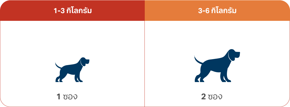 - ปริมาณอาหารปรับเปลี่ยนได้ตามความเหมาะสมของสายพันธุ์ น้ำหนัก และกิจกรรมของสุนัข