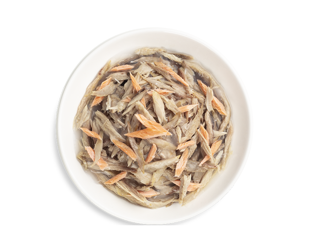 เนื้อปลาทูน่ารสชาติเข้มข้นและปลาแซลมอนเนื้อนุ่มในน้ำเกรวี่หอมอร่อย ทานง่ายเหมาะสำหรับแมวสูงวัย เสริมด้วยเลซิธิน และทอรีน ช่วยชะลอความเสื่อมของร่างกาย เสริมสร้างระบบภูมิคุ้มกัน ไม่ใส่เกลือและสารกันเสีย