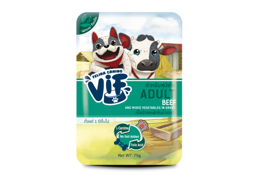 D6 เนื้อวัวและผักในน้ำเกรวี่ สำหรับสุนัขโต