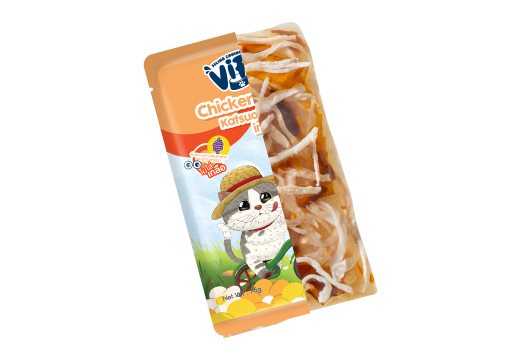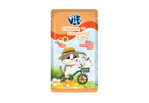 C18 เนื้อไก่ผสมปลาโอลายอบแห้ง ในเจลลี่