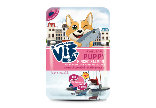 P4 ปลาแซลมอนสับผสมตับไก่มันฝรั่ง และนมแพะสำหรับลูกสุนัข