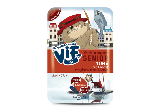 S3 ปลาทูน่าผสมปลาแซลมอน ในน้ำเกรวี่สำหรับแมวสูงอายุ